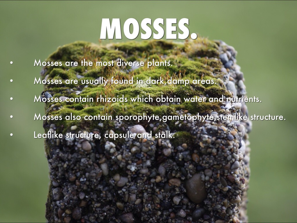 Mosses also contain sporophyte,gametophyte,stemlike structure.