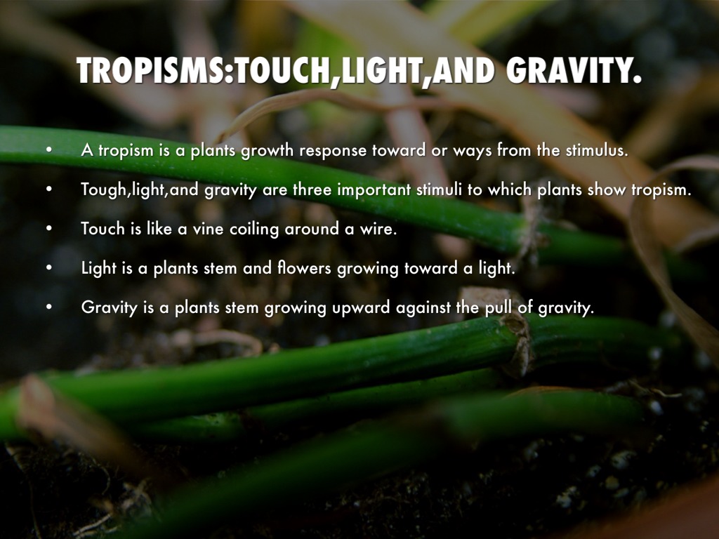 TROPISMS:TOUCH,LIGHT,AND GRAVITY.