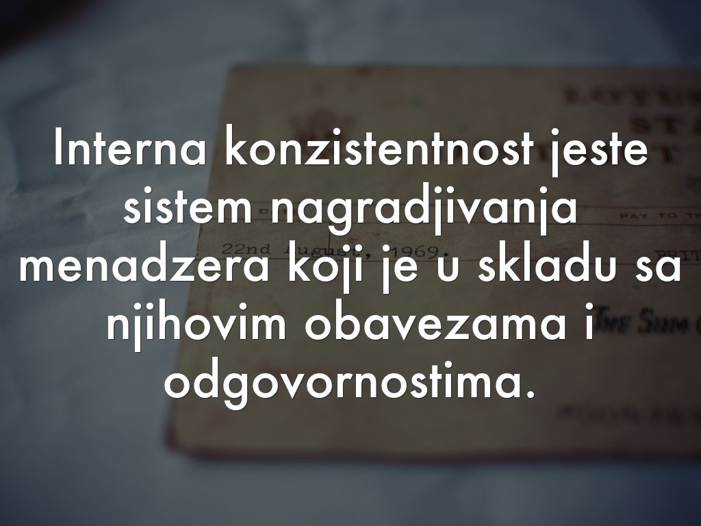 Interna konzistentnost jeste sistem nagradjivanja menadzera koji je u skladu sa njihovim obavezama i odgovornostima.