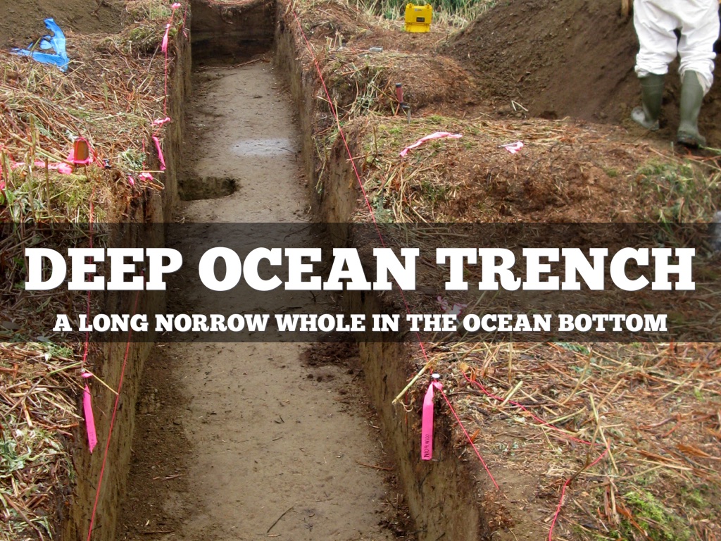 A LONG NORROW WHOLE IN THE OCEAN BOTTOM
