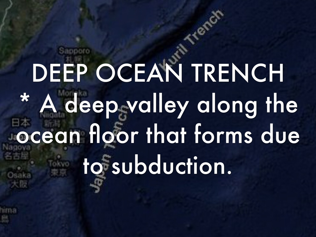 * A resulting landform of oceanic vs oceanic convergent boundary. An example is the Mariana Trench aka Mariana Islands.
