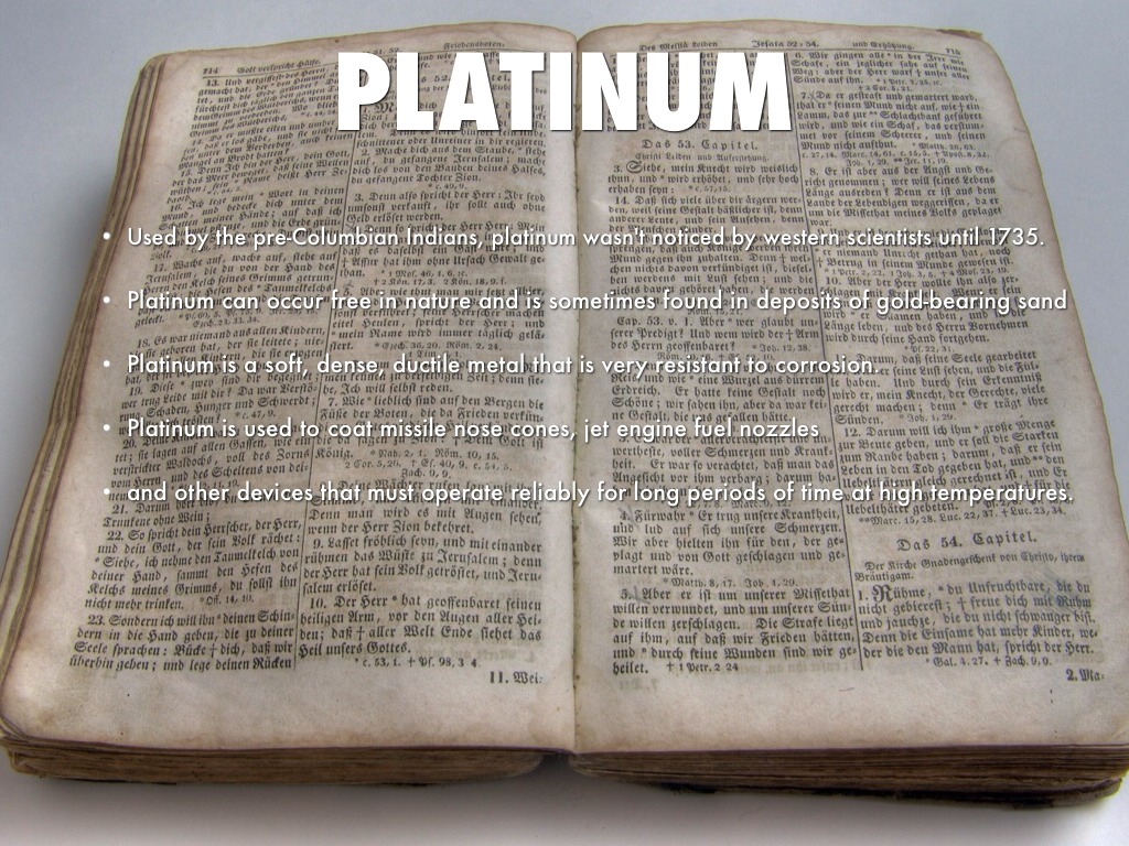Used by the pre-Columbian Indians, platinum wasn't noticed by western scientists until 1735.