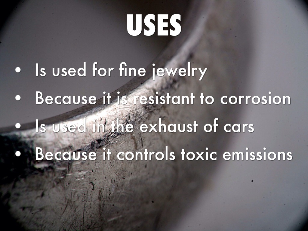 Platinum is used to coat missile nose cones, jet engine fuel nozzles
