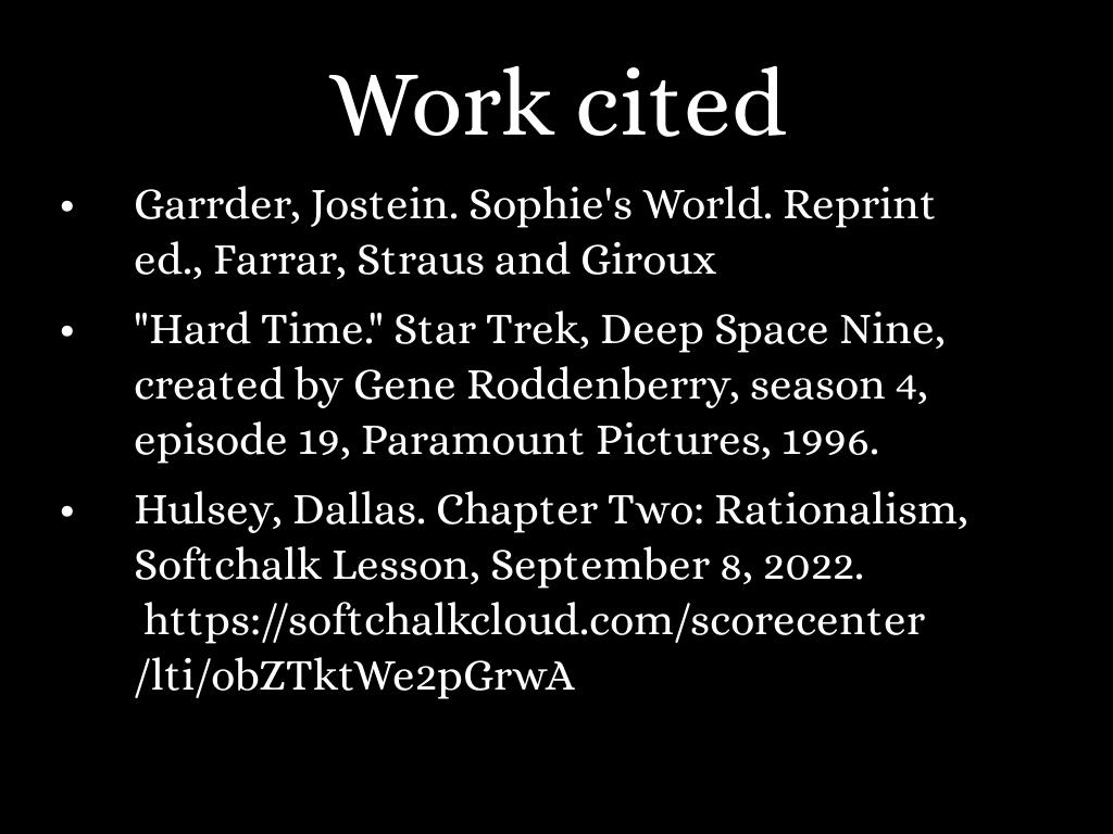 Hulsey, Dallas. Chapter Two: Rationalism, Softchalk Lesson, September 8, 2022.