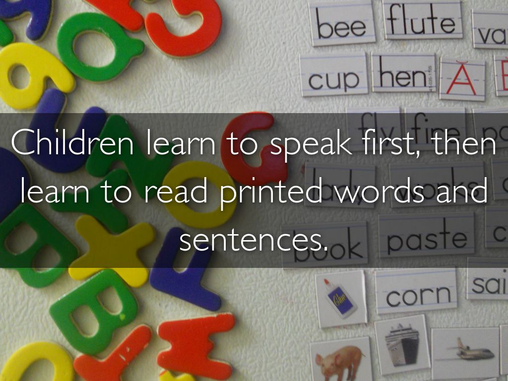 Children learn to speak first, then learn to read printed words and sentences.