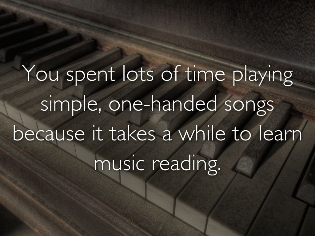 You spent lots of time playing simple, one-handed songs because it takes a while to learn music reading.