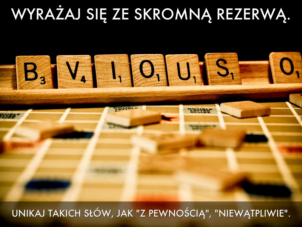 UNIKAJ TAKICH SŁÓW, JAK "Z PEWNOŚCIĄ", "NIEWĄTPLIWIE".