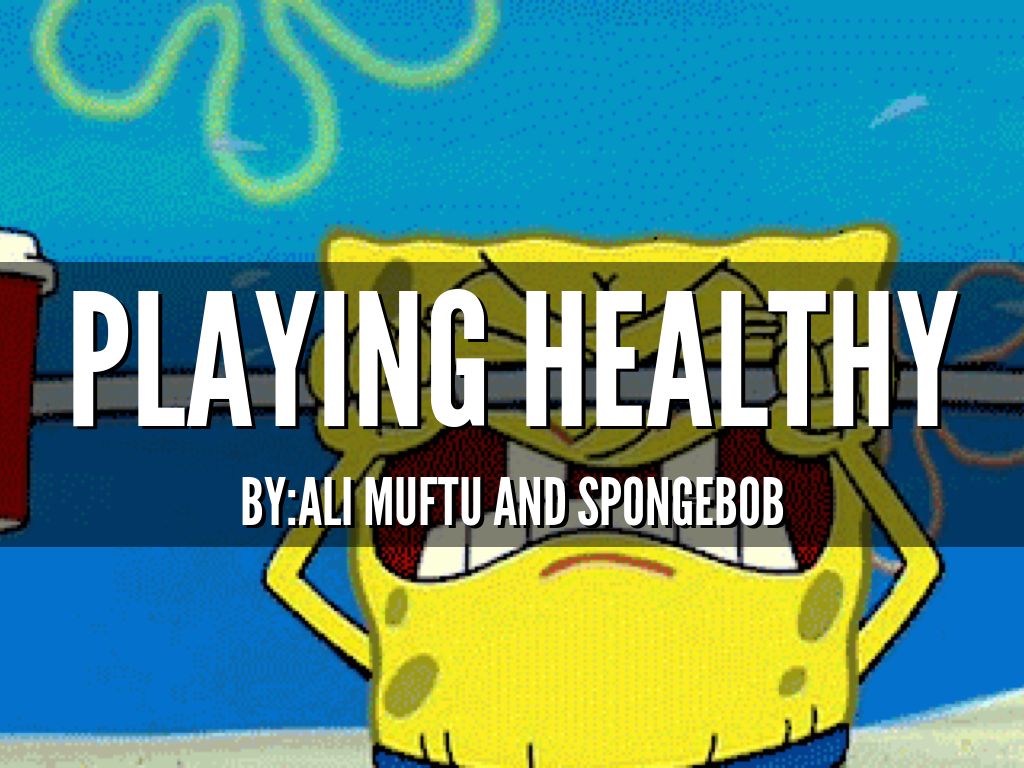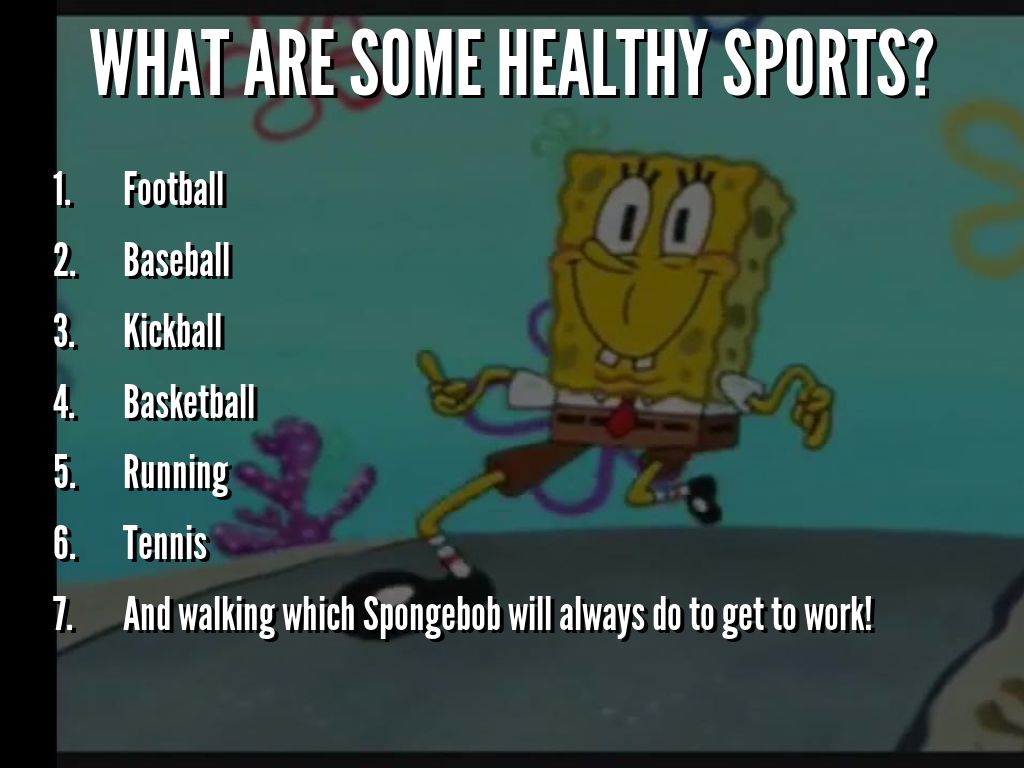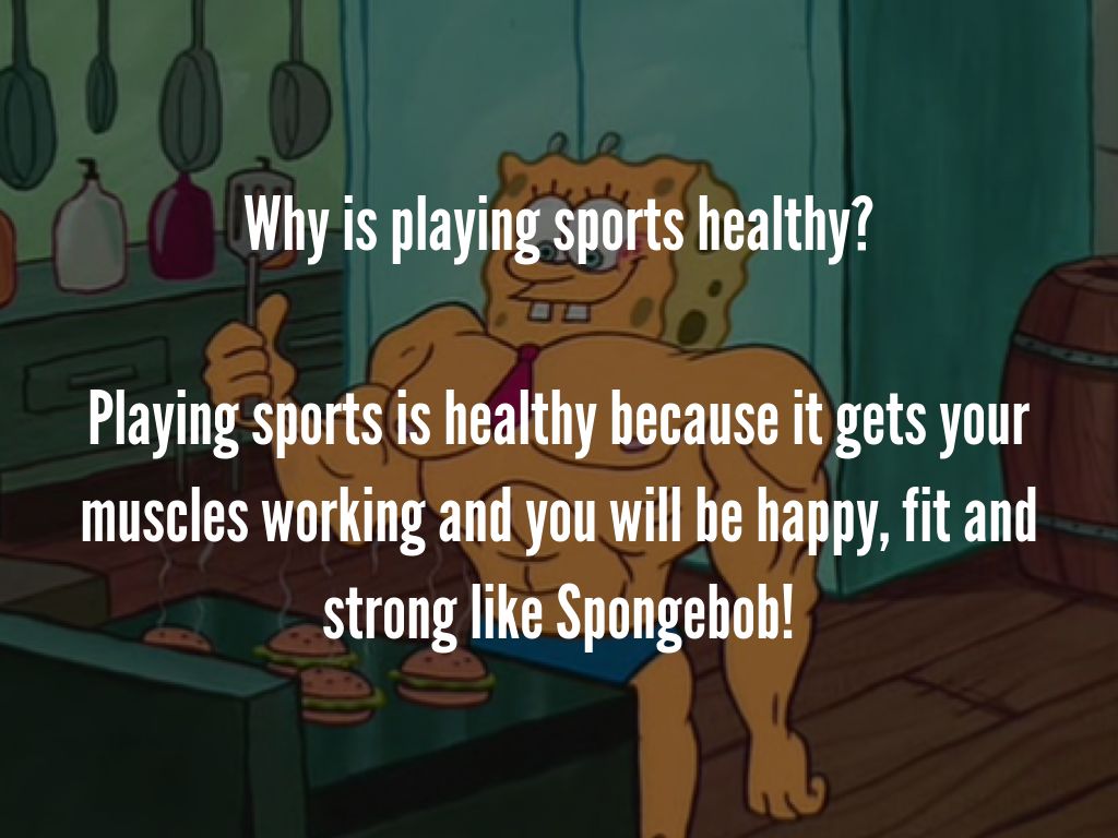 Playing sports is healthy because it gets your muscles working and you will be happy, fit and strong like Spongebob!