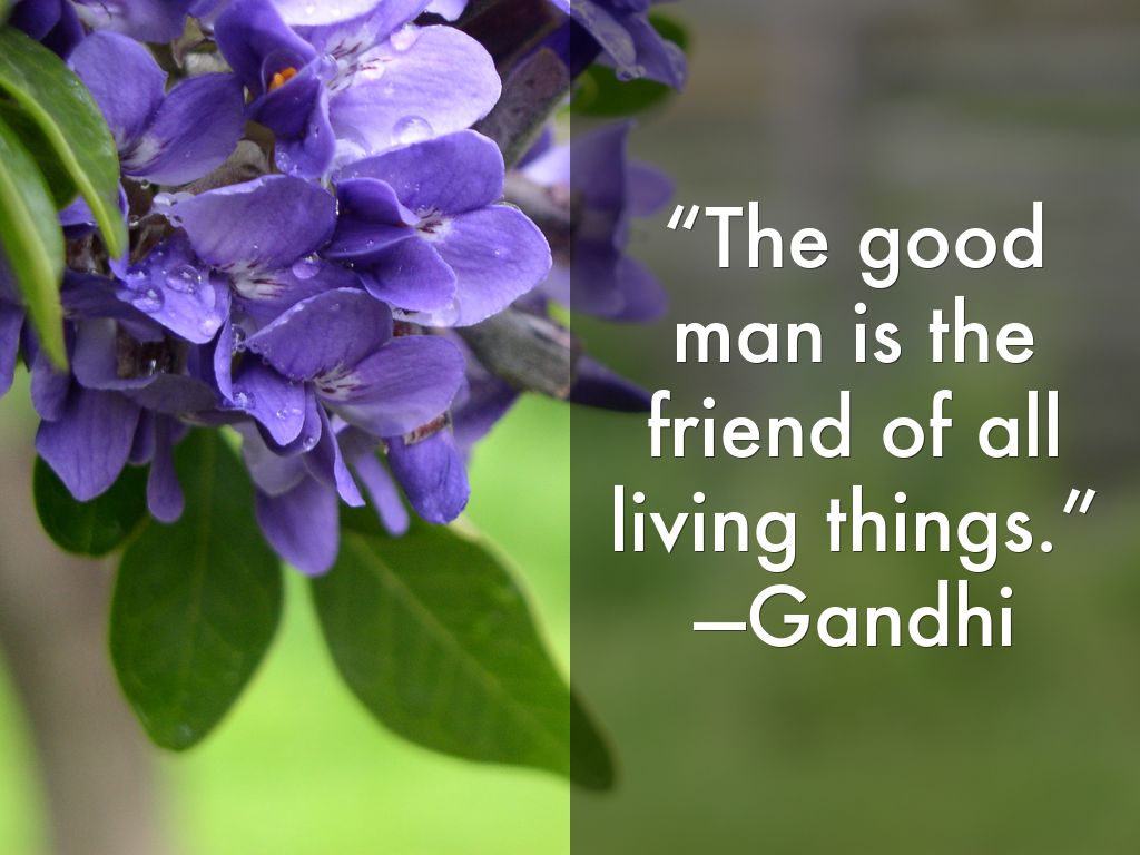 “The good man is the friend of all living things.” —Gandhi