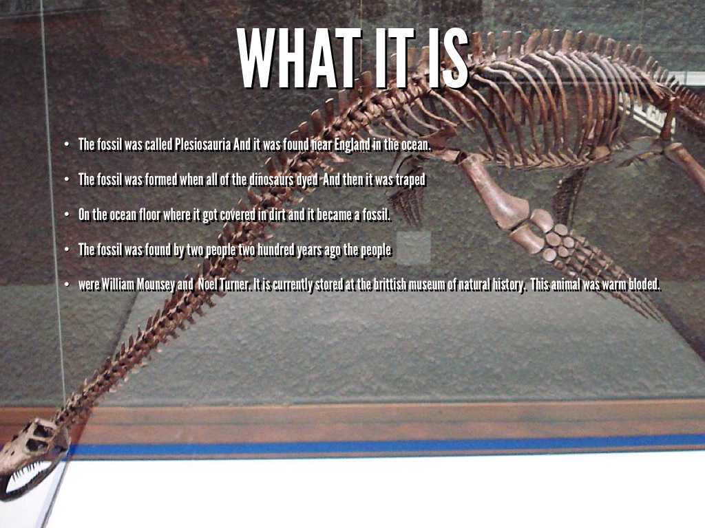 were William Mounsey and Noel Turner. It is currently stored at the brittish museum of natural history. This animal was warm bloded.