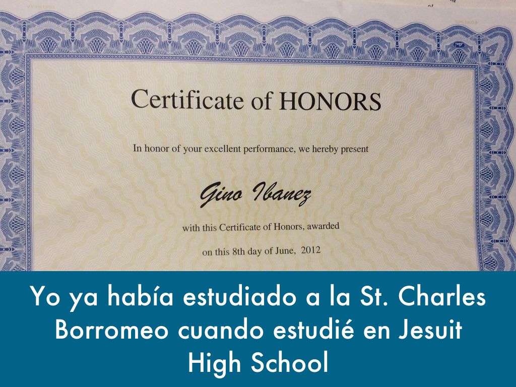 Yo ya había estudiado a la St. Charles Borromeo cuando estudié en Jesuit High School