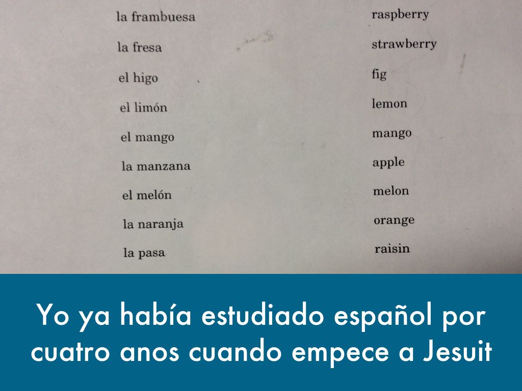 Yo ya había estudiado español por cuatro anos cuando empece a Jesuit