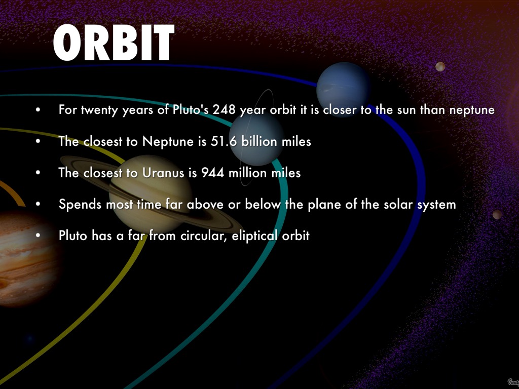 For twenty years of Pluto's 248 year orbit it is closer to the sun than neptune