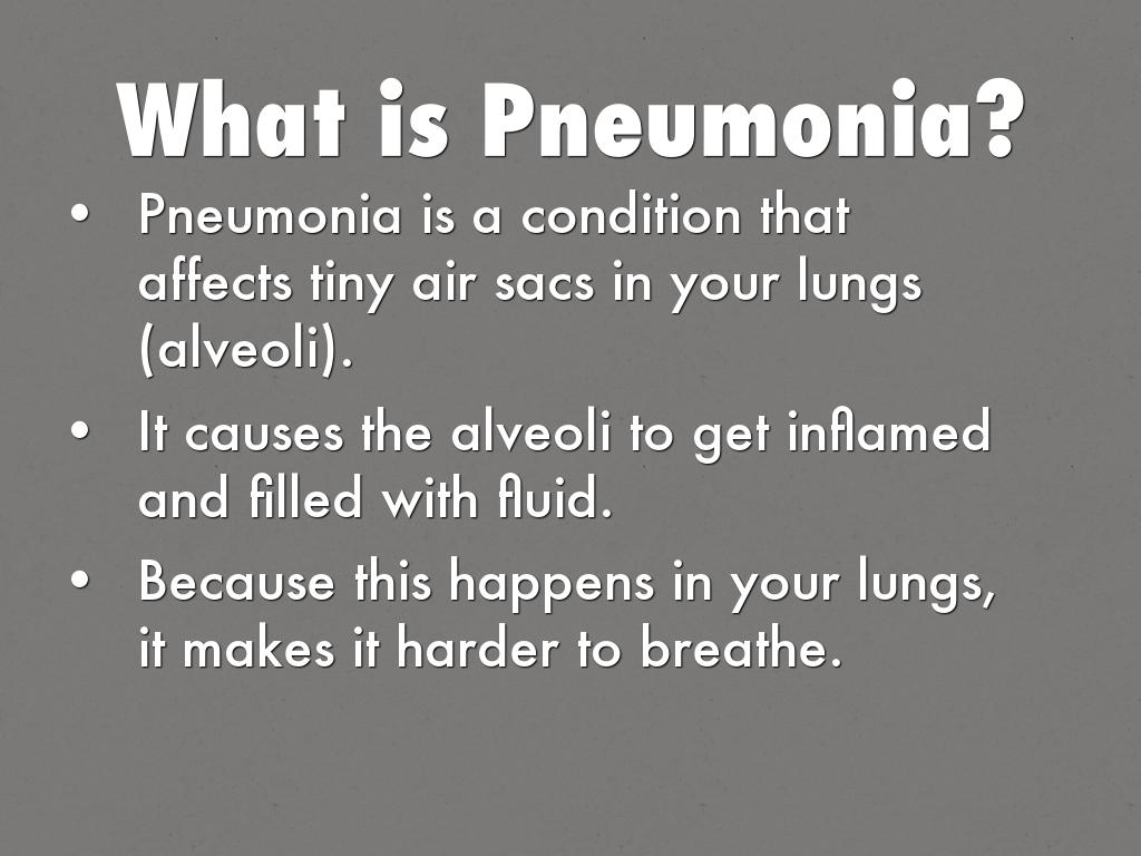 Pneumonia makes your lungs get inflamed and filled with fluid, making it harder to breathe.