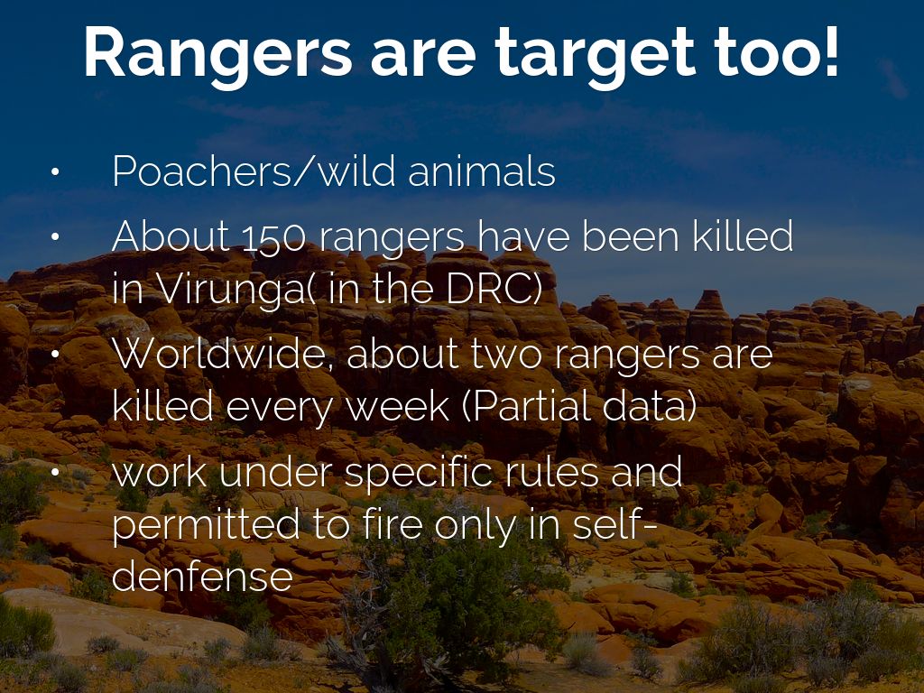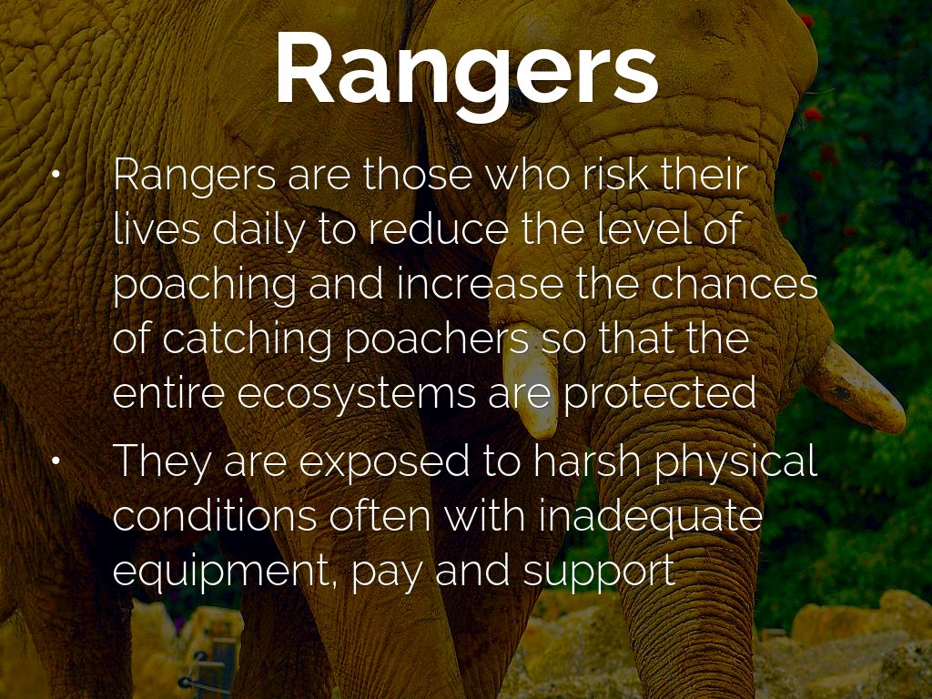 Rangers are those who risk their lives daily to reduce the level of poaching and increase the chances of catching poachers so that the entire ecosystems are protected