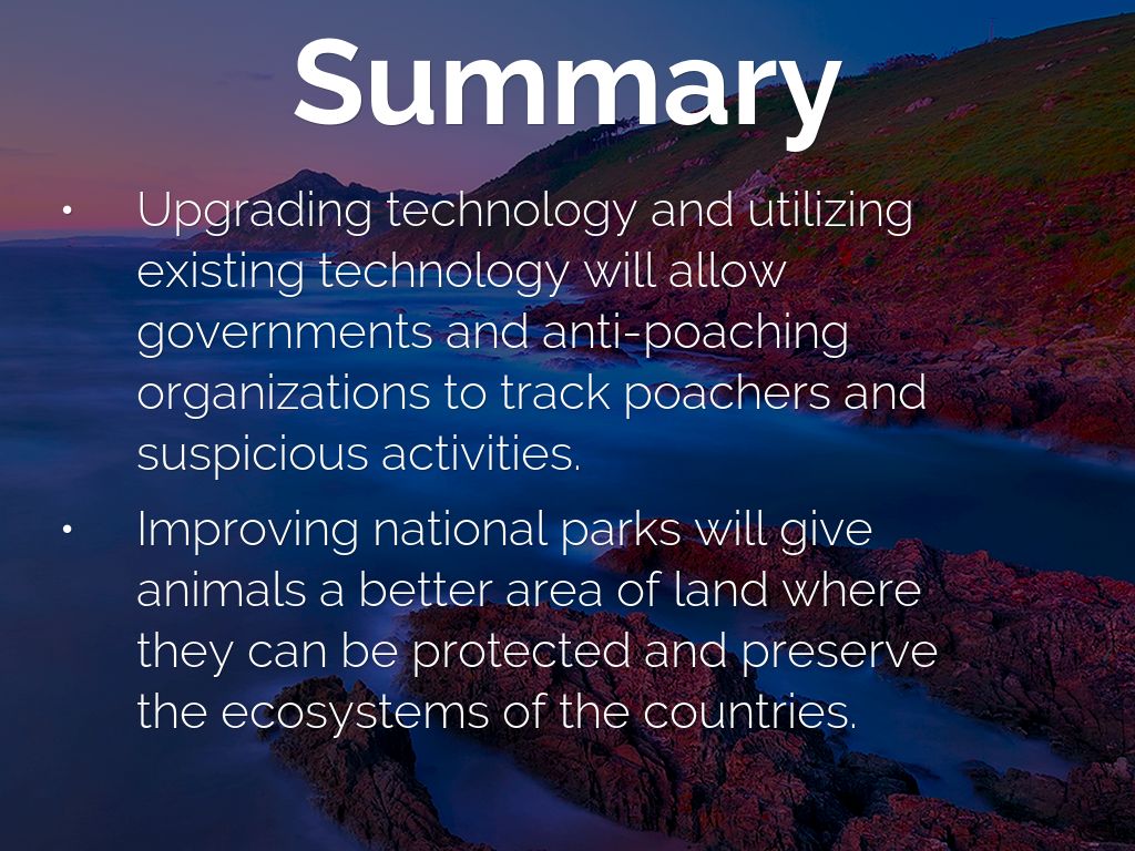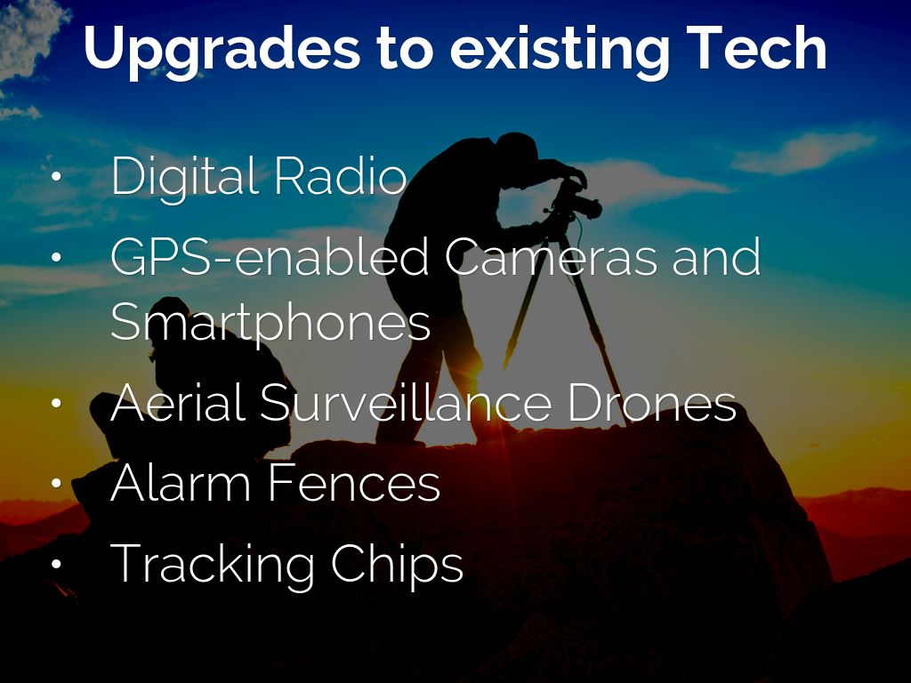 Upgrading technology and utilizing existing technology will allow governments and anti-poaching organizations to track poachers and suspicious activities.