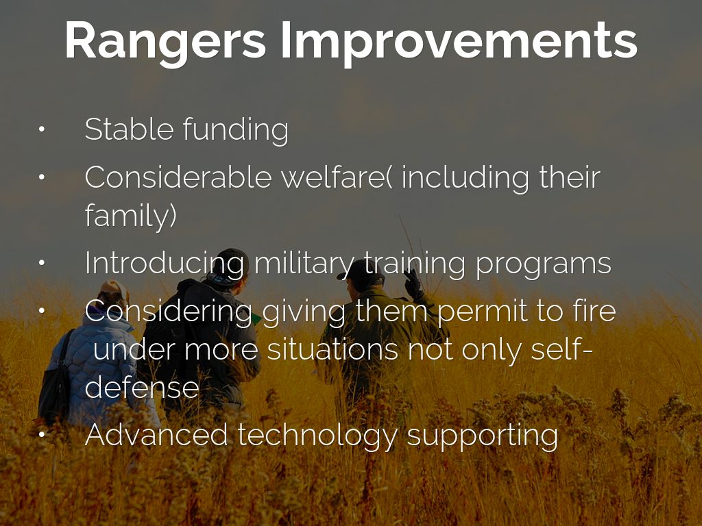 Better training and protection for rangers will cause them to handle situations with poachers more efficiently and safely. This may assist in making a park ranger a more popular job.