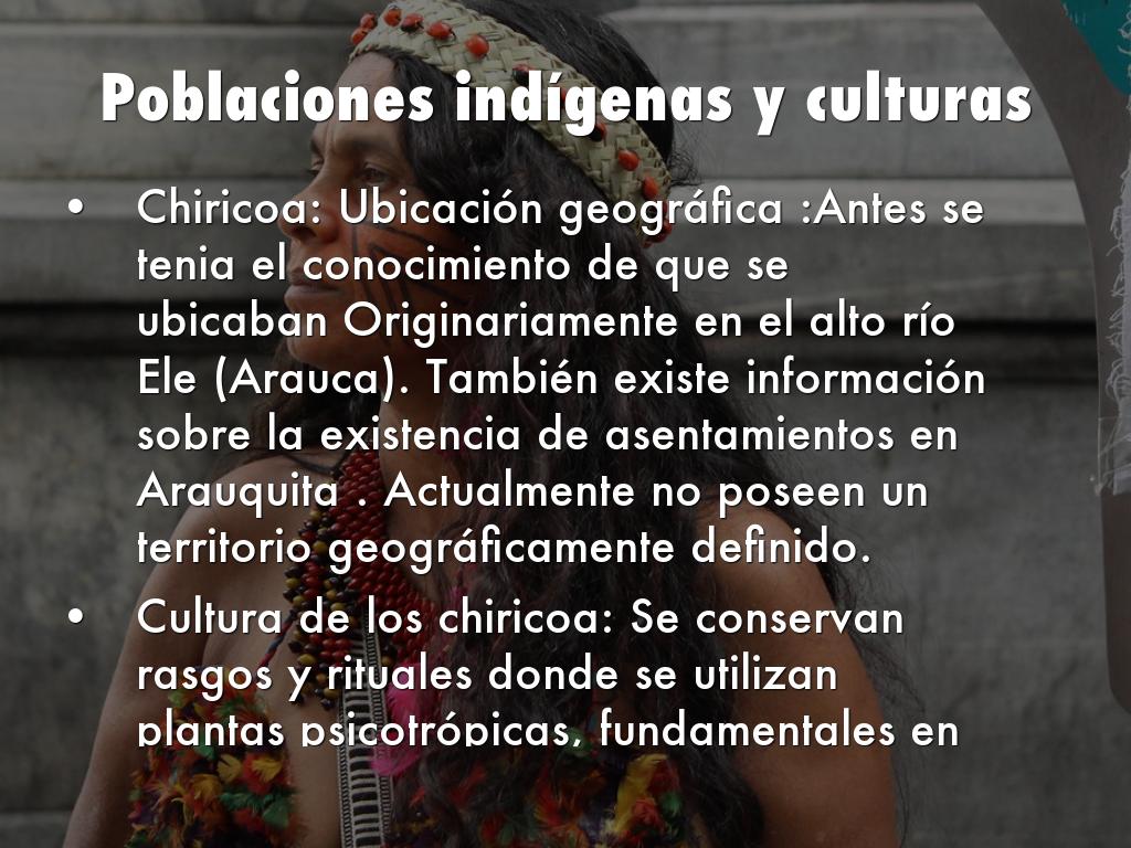 Chiricoa: Ubicación geográfica :Antes se tenia el conocimiento de que se ubicaban Originariamente en el alto río Ele (Arauca). También existe información sobre la existencia de asentamientos en Arauquita . Actualmente no poseen un territorio geográficamente definido.