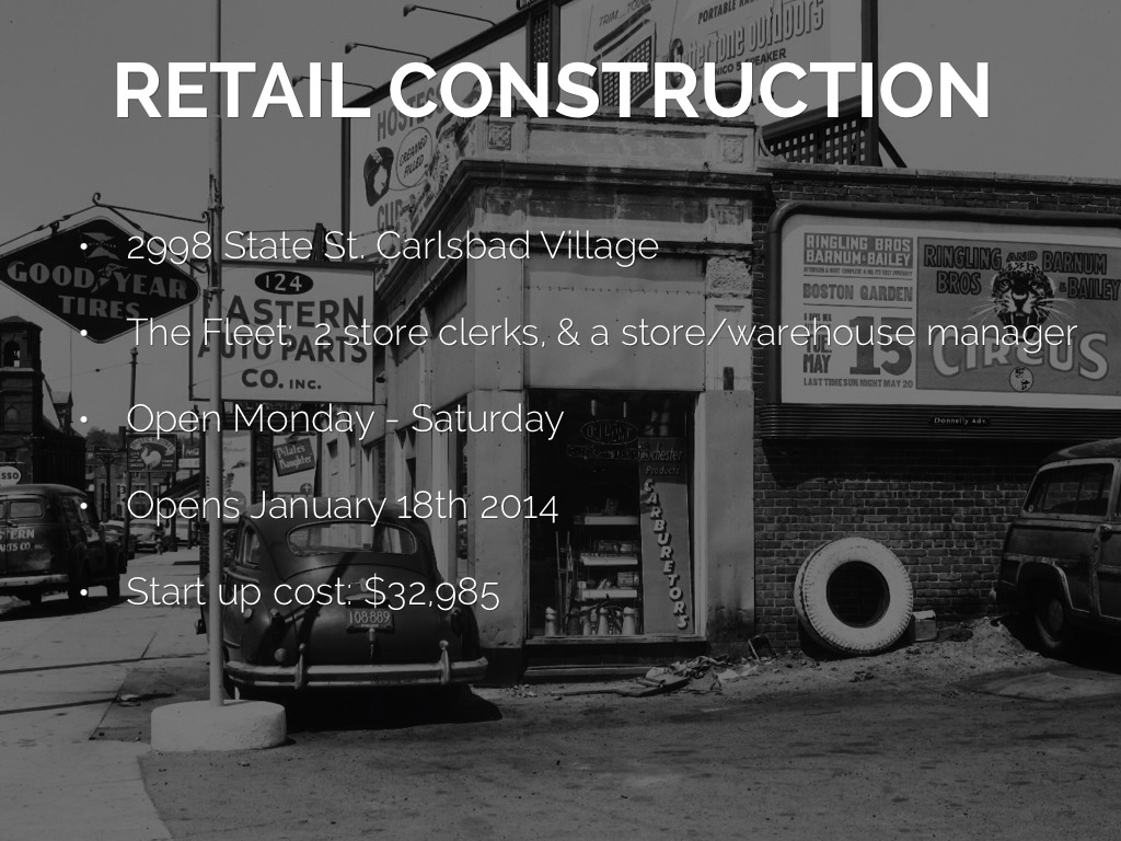 • The Fleet: 2 store clerks, & a store/warehouse manager