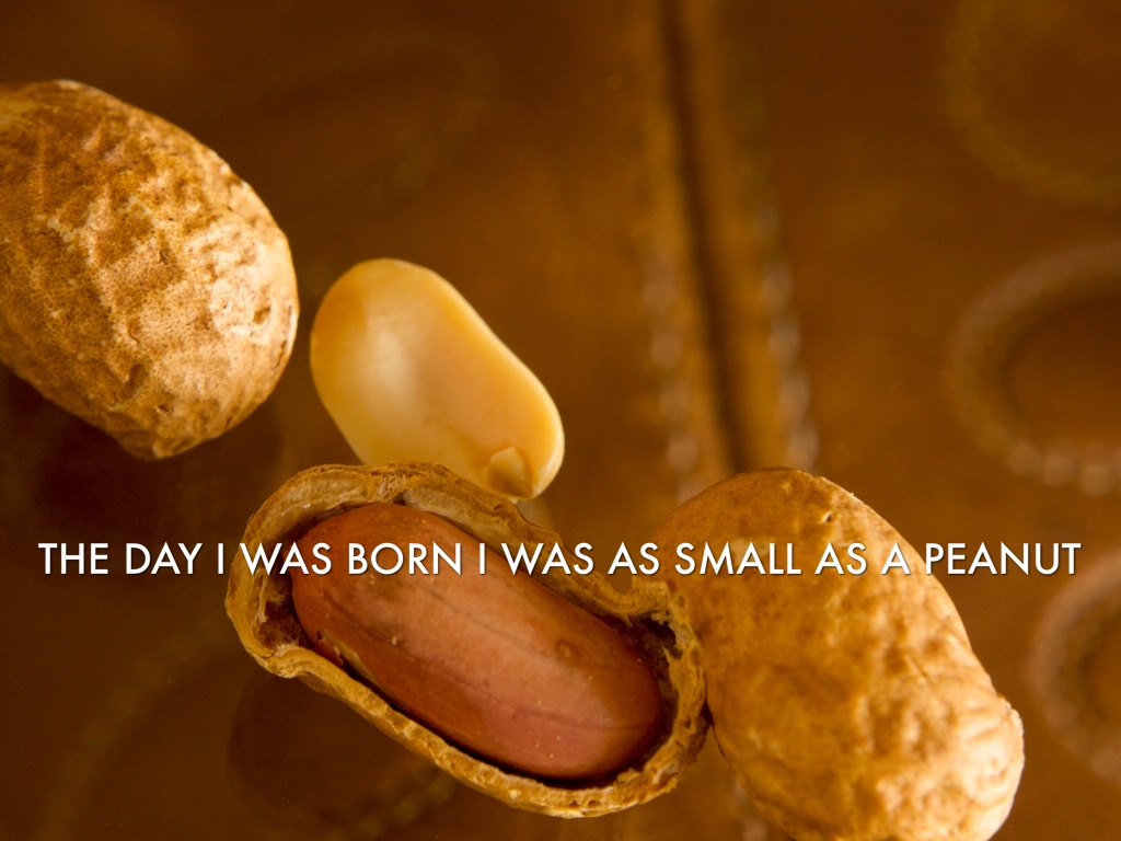 THE DAY I WAS BORN I WAS AS SMALL AS A PEANUT