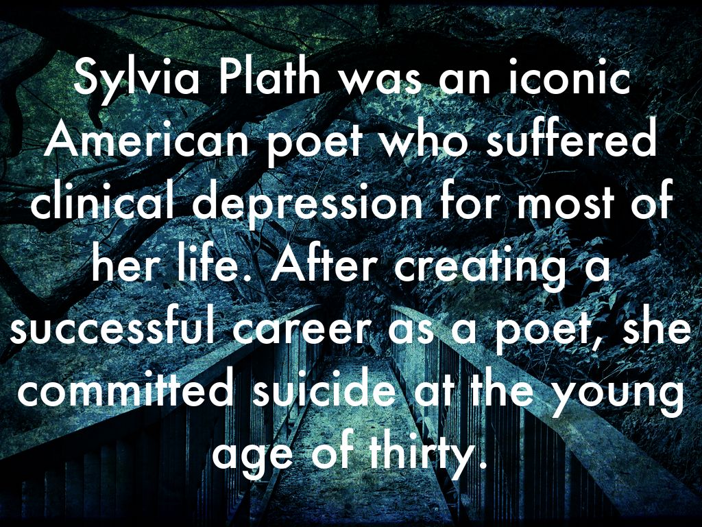 Sylvia Plath was an iconic American poet who suffered clinical depression for most of her life. After creating a successful career as a poet, she committed suicide at the young age of thirty.