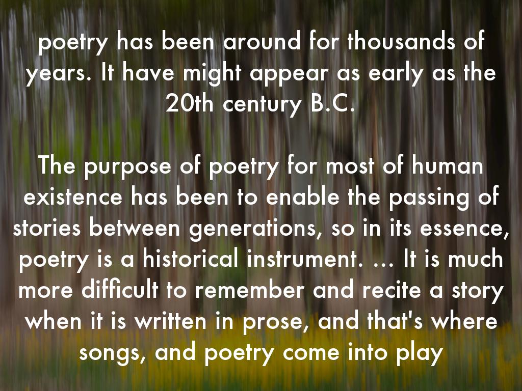 poetry has been around for thousands of years. It have might appear as early as the 20th century B.C.