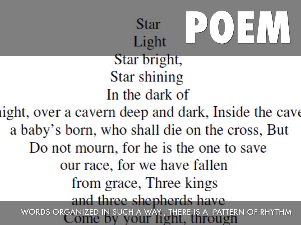 WORDS ORGANIZED IN SUCH A WAY , THERE IS A PATTERN OF RHYTHM