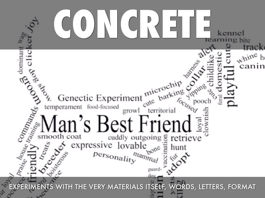 EXPERIMENTS WITH THE VERY MATERIALS ITSELF, WORDS, LETTERS, FORMAT