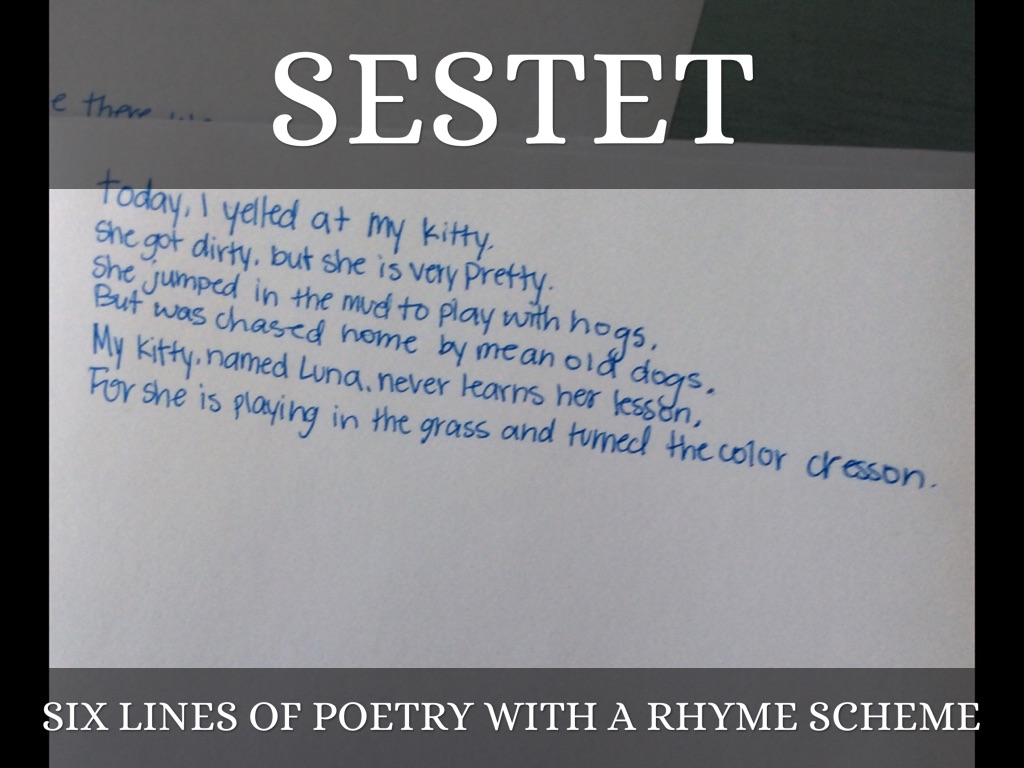 SIX LINES OF POETRY WITH A RHYME SCHEME