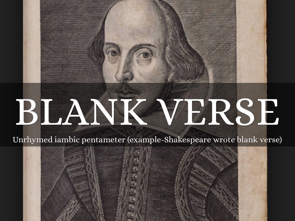 Unrhymed iambic pentameter (example-Shakespeare wrote blank verse)