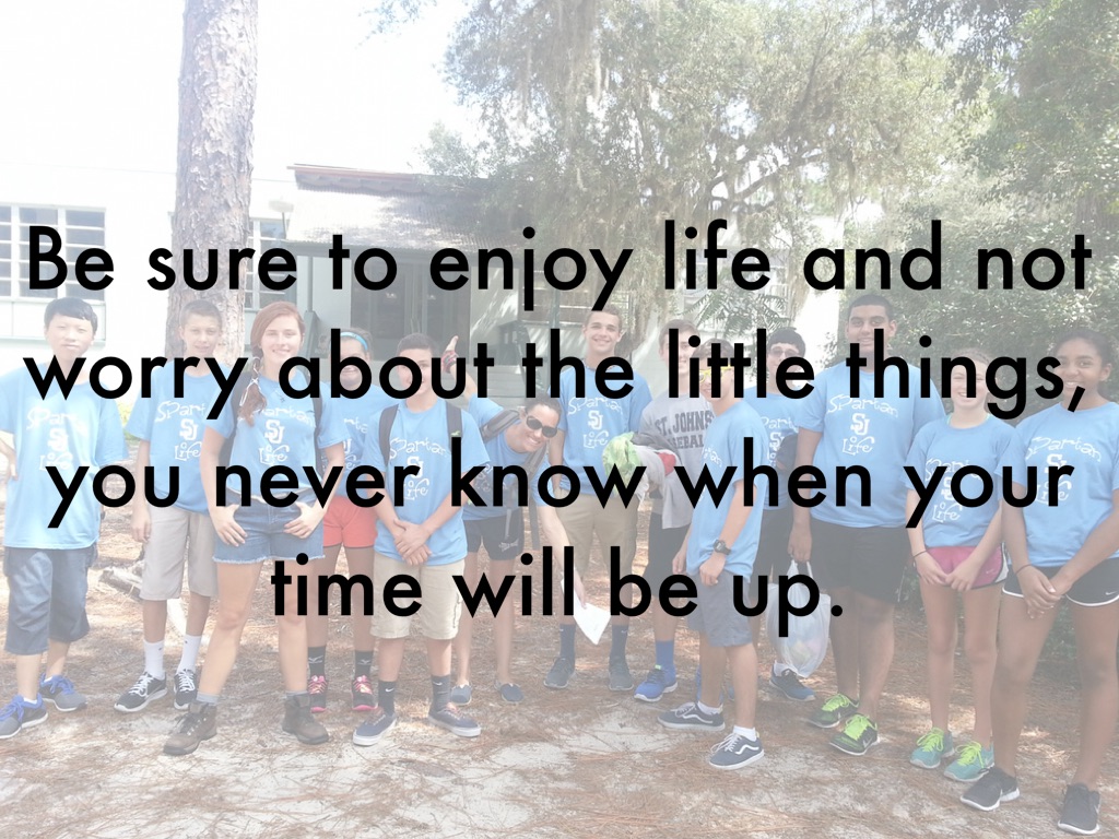 Be sure to enjoy life and not worry about the little things, you never know when your time will be up.