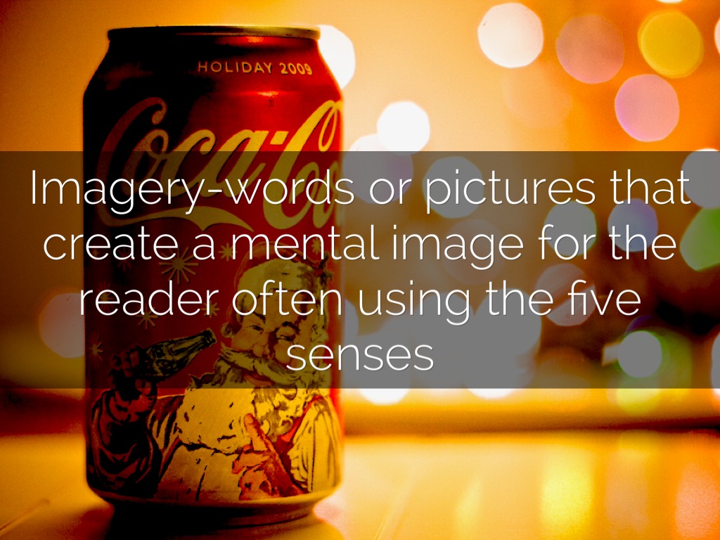 Imagery-words or pictures that create a mental image for the reader often using the five senses
