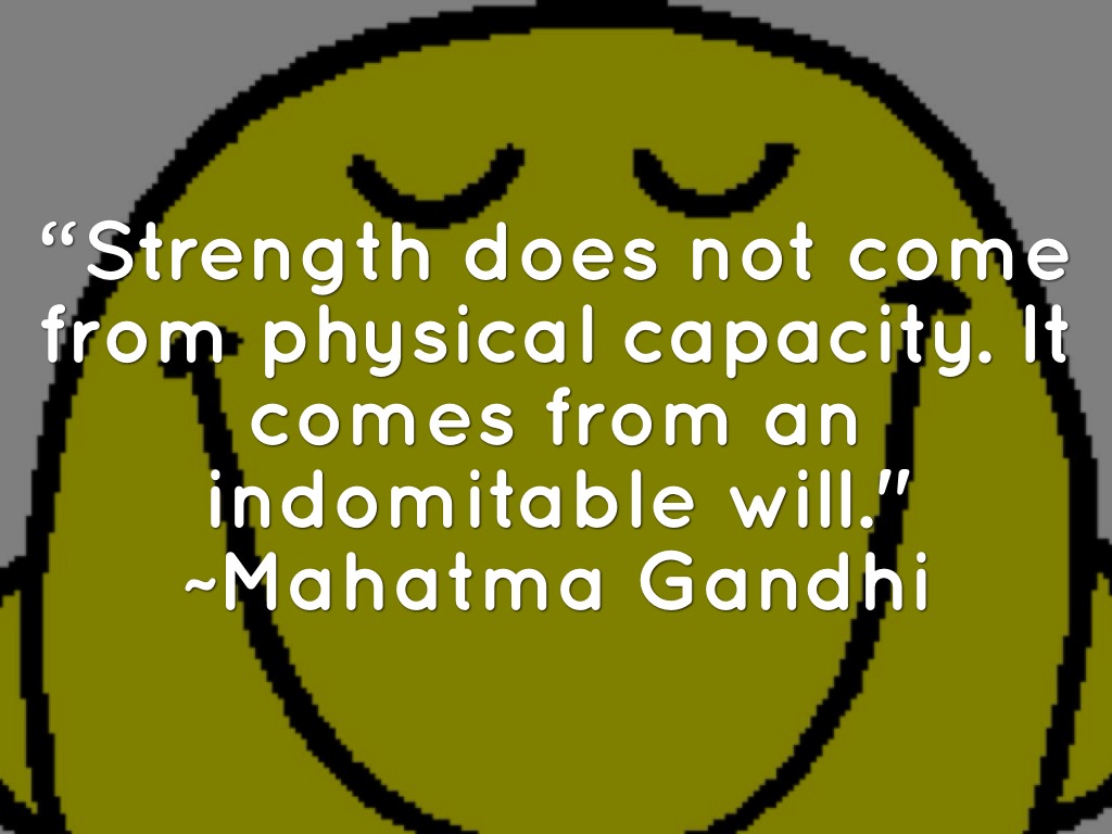 “Strength does not come from physical capacity. It comes from an indomitable will." ~Mahatma Gandhi