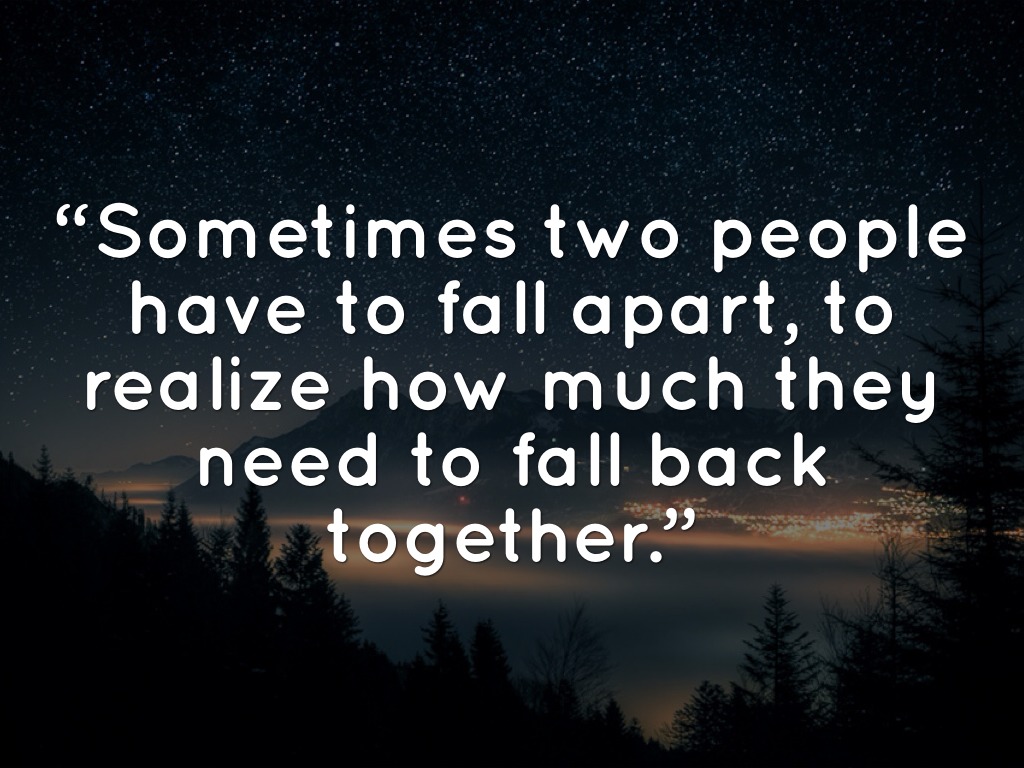 “Sometimes two people have to fall apart, to realize how much they need to fall back together.”