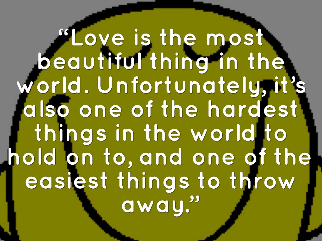“Love is the most beautiful thing in the world. Unfortunately, it’s also one of the hardest things in the world to hold on to, and one of the easiest things to throw away.”
