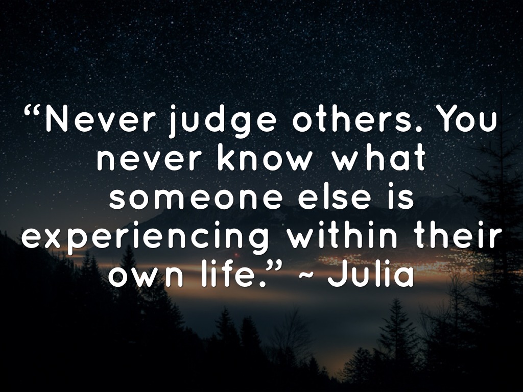 “Never judge others. You never know what someone else is experiencing within their own life.” ~ Julia