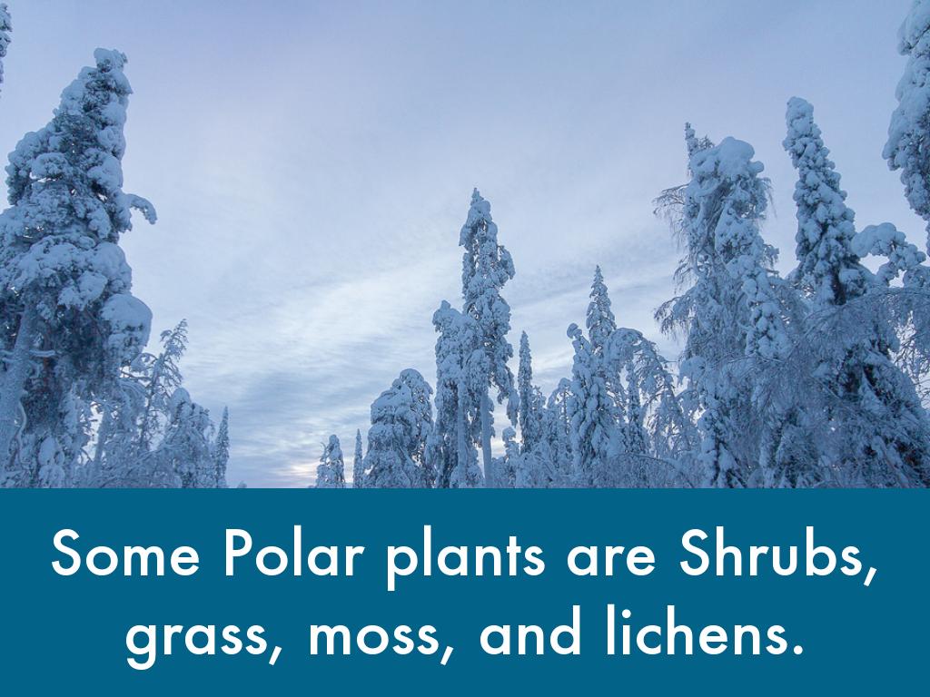 Some Polar plants are Shrubs, grass, moss, and lichens.