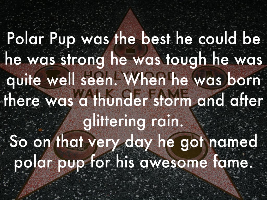 Polar Pup was the best he could be he was strong he was tough he was quite well seen. When he was born there was a thunder storm and after glittering rain.