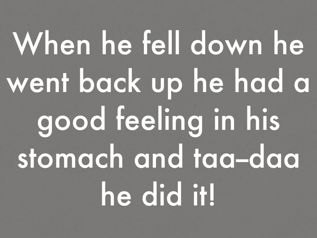 When he fell down he went back up he had a good feeling in his stomach and taa--daa he did it!