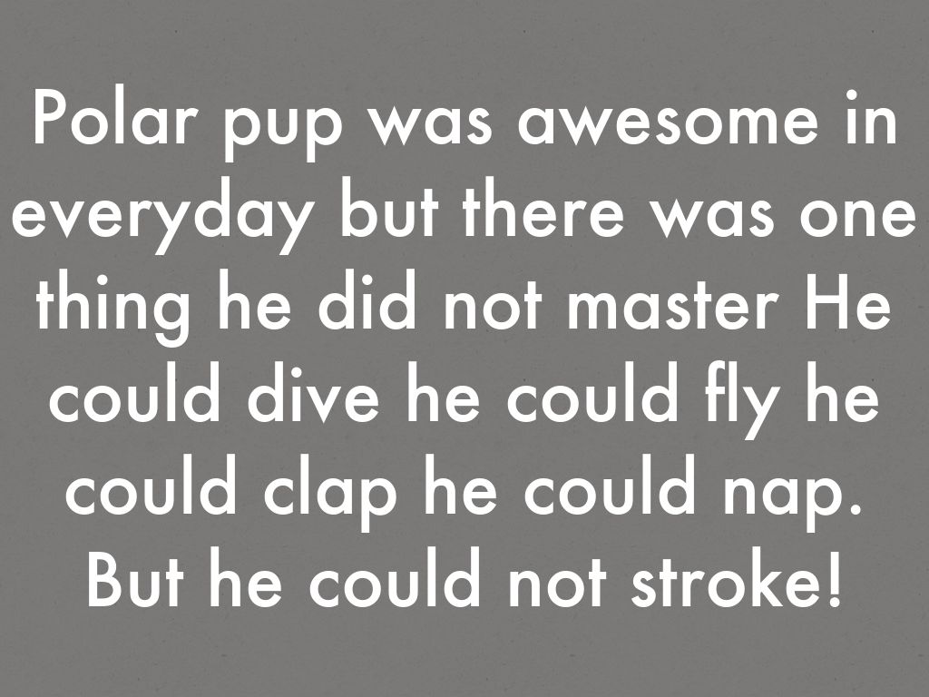 Polar pup was awesome everyday but there was one thing he did not master He could dive he could fly he could clap he could nap. But he could stroke!