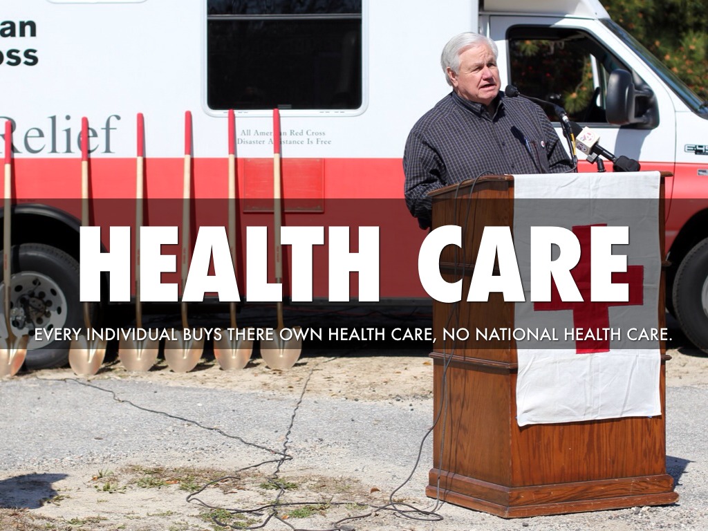 EVERY INDIVIDUAL BUYS THERE OWN HEALTH CARE, NO NATIONAL HEALTH CARE.
