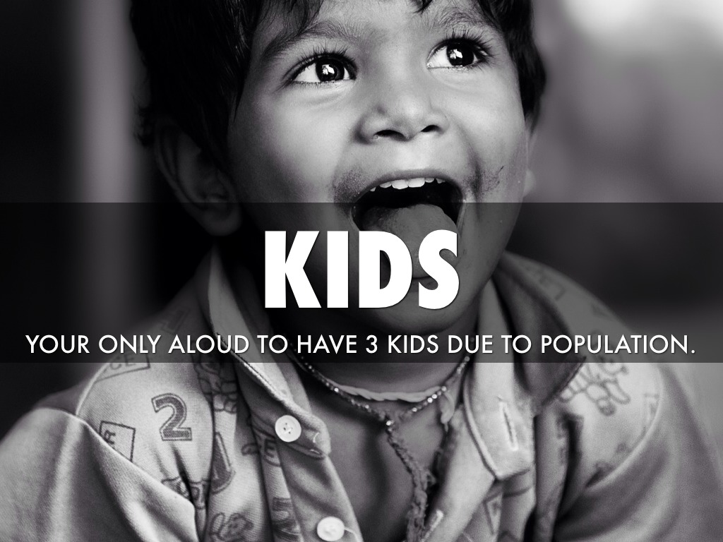 YOUR ONLY ALOUD TO HAVE 3 KIDS DUE TO POPULATION.