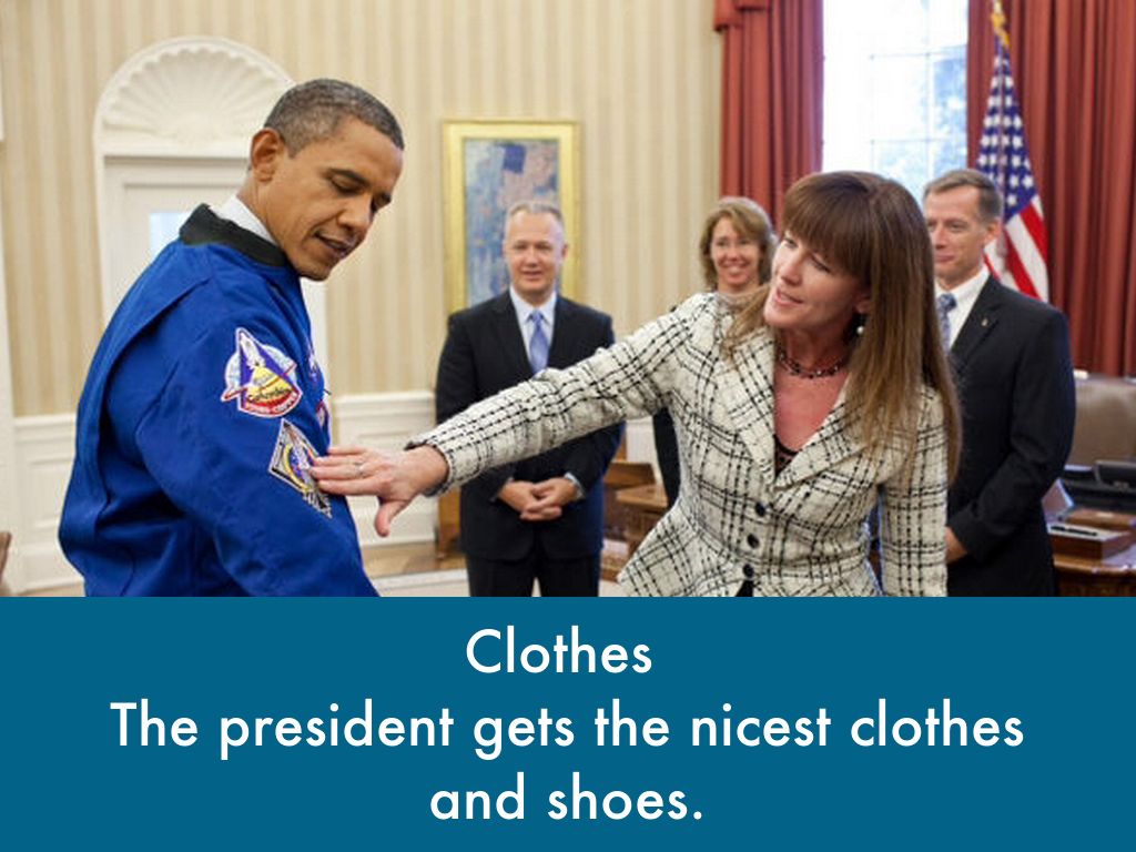 The president gets the nicest clothes and shoes.