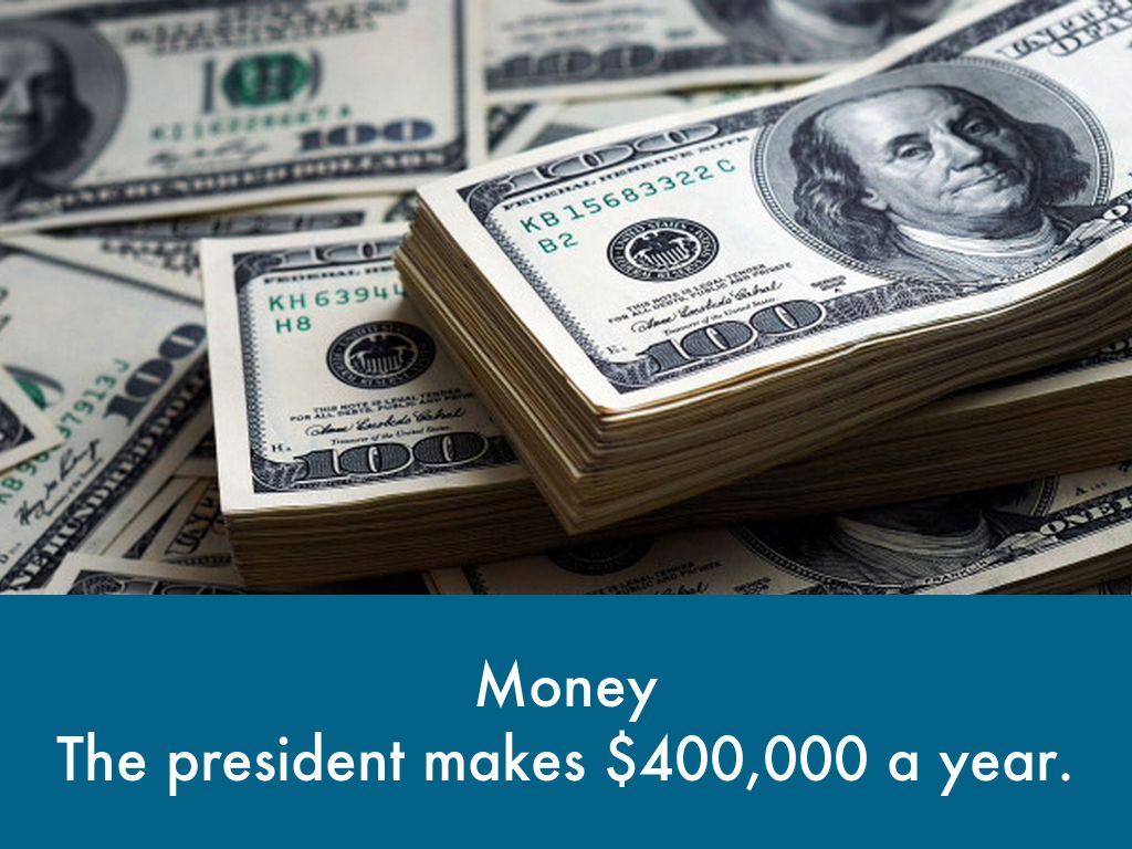 The president makes $400,000 a year.
