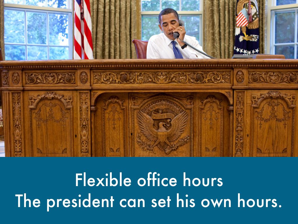 The president can set his own hours.