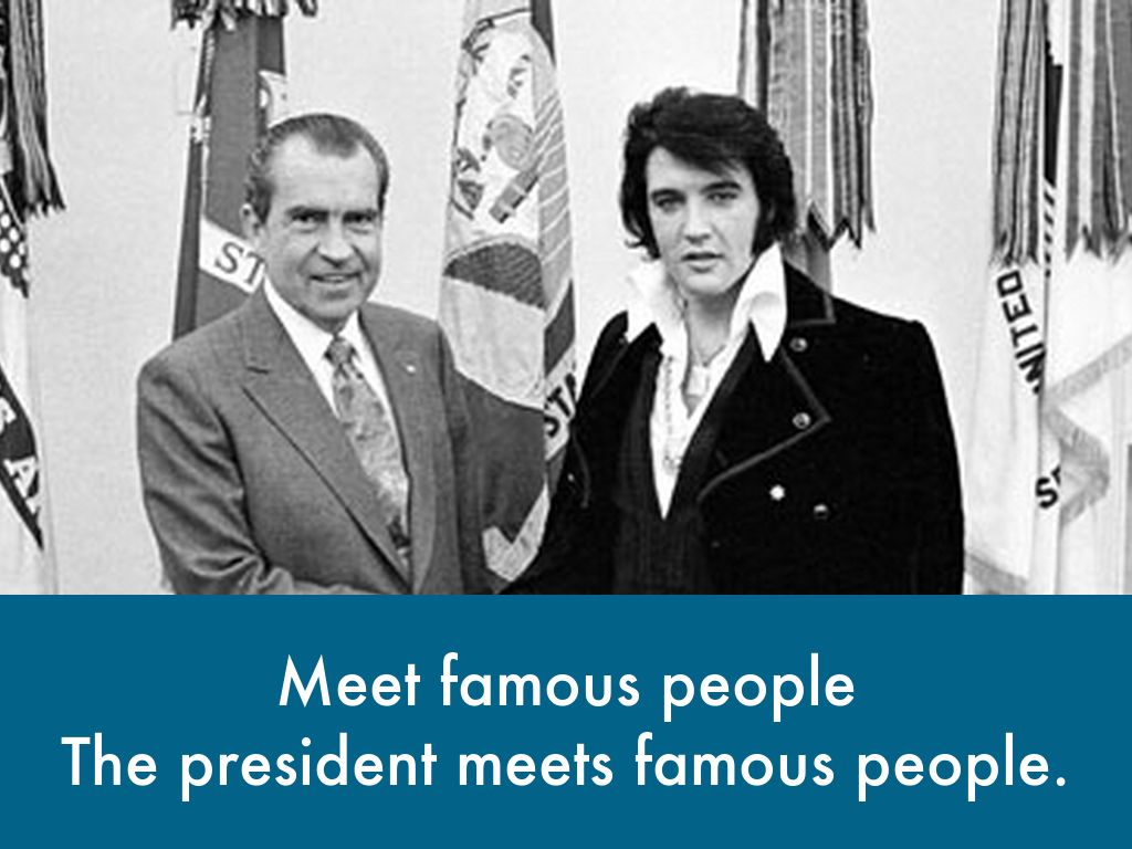The president meets famous people.