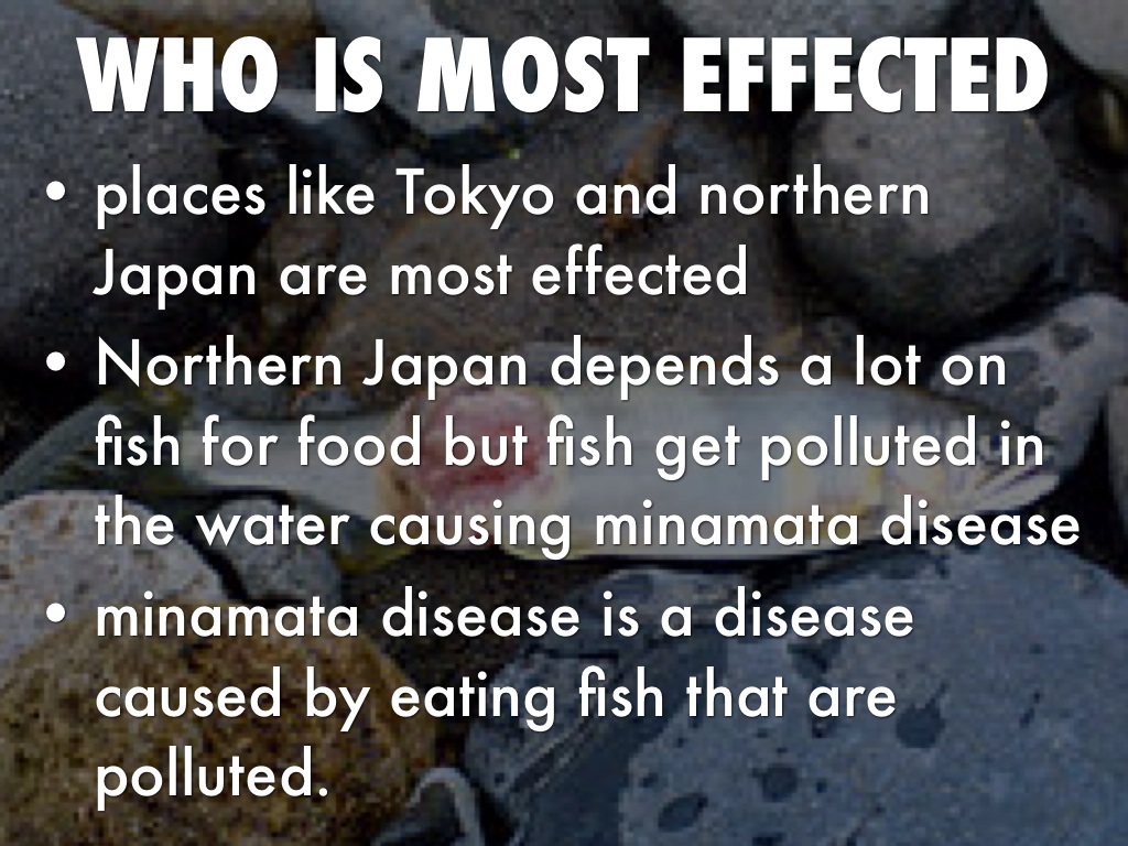 Northern Japan depends a lot on fish for food but fish get polluted in the water causing minamata disease