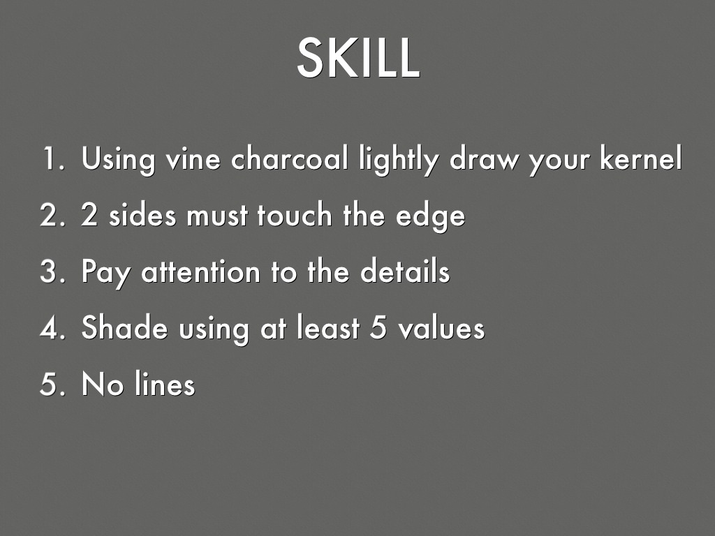 Look at it's form, it darkest shadows and brightest highlights. Count how many tufts it has, is the hull still attached? does it look like something? what makes it unique?