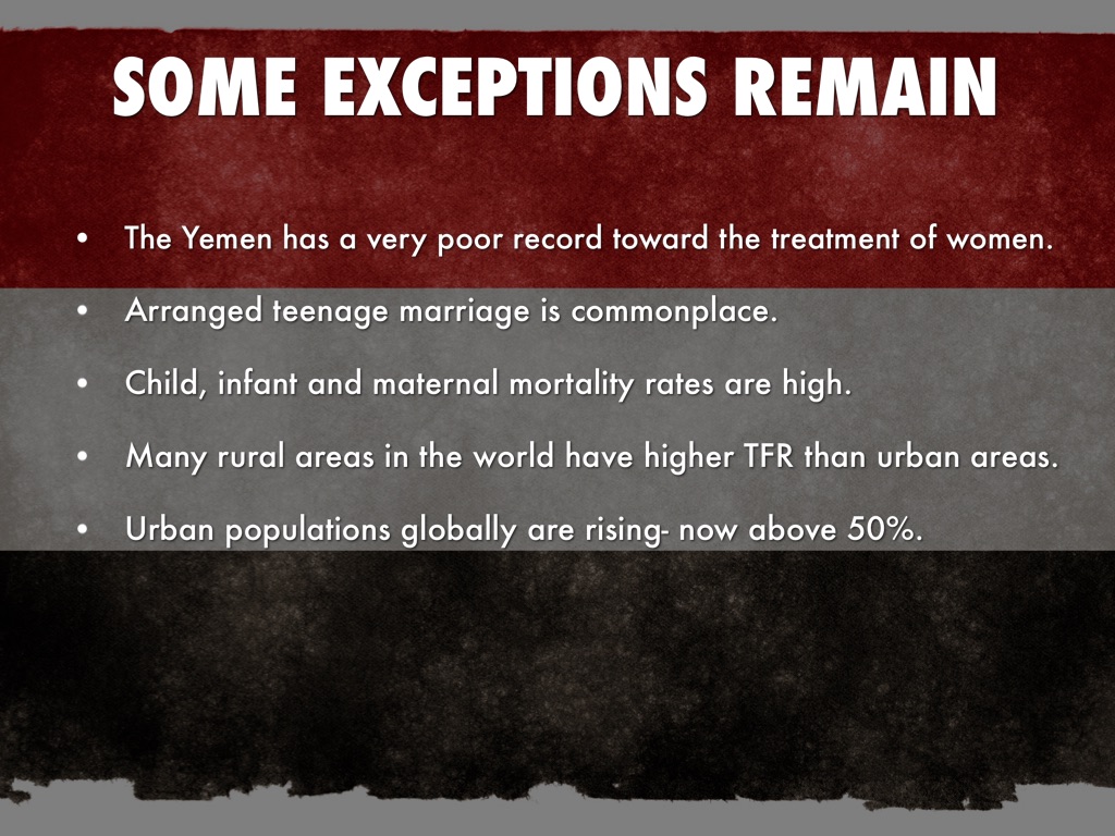 • Many rural areas in the world have higher TFR than urban areas.