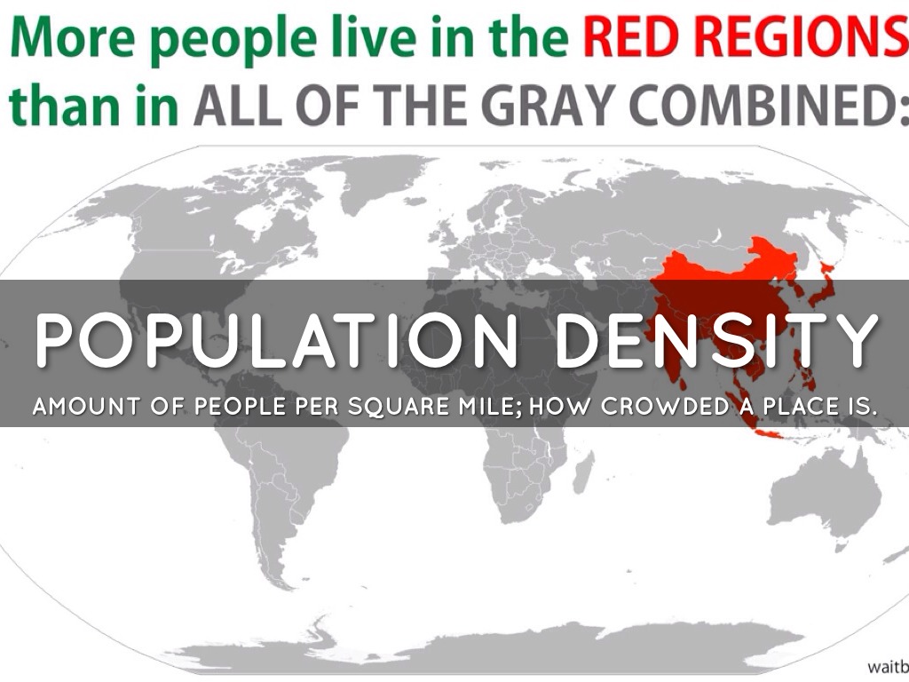 AMOUNT OF PEOPLE PER SQUARE MILE; HOW CROWDED A PLACE IS.